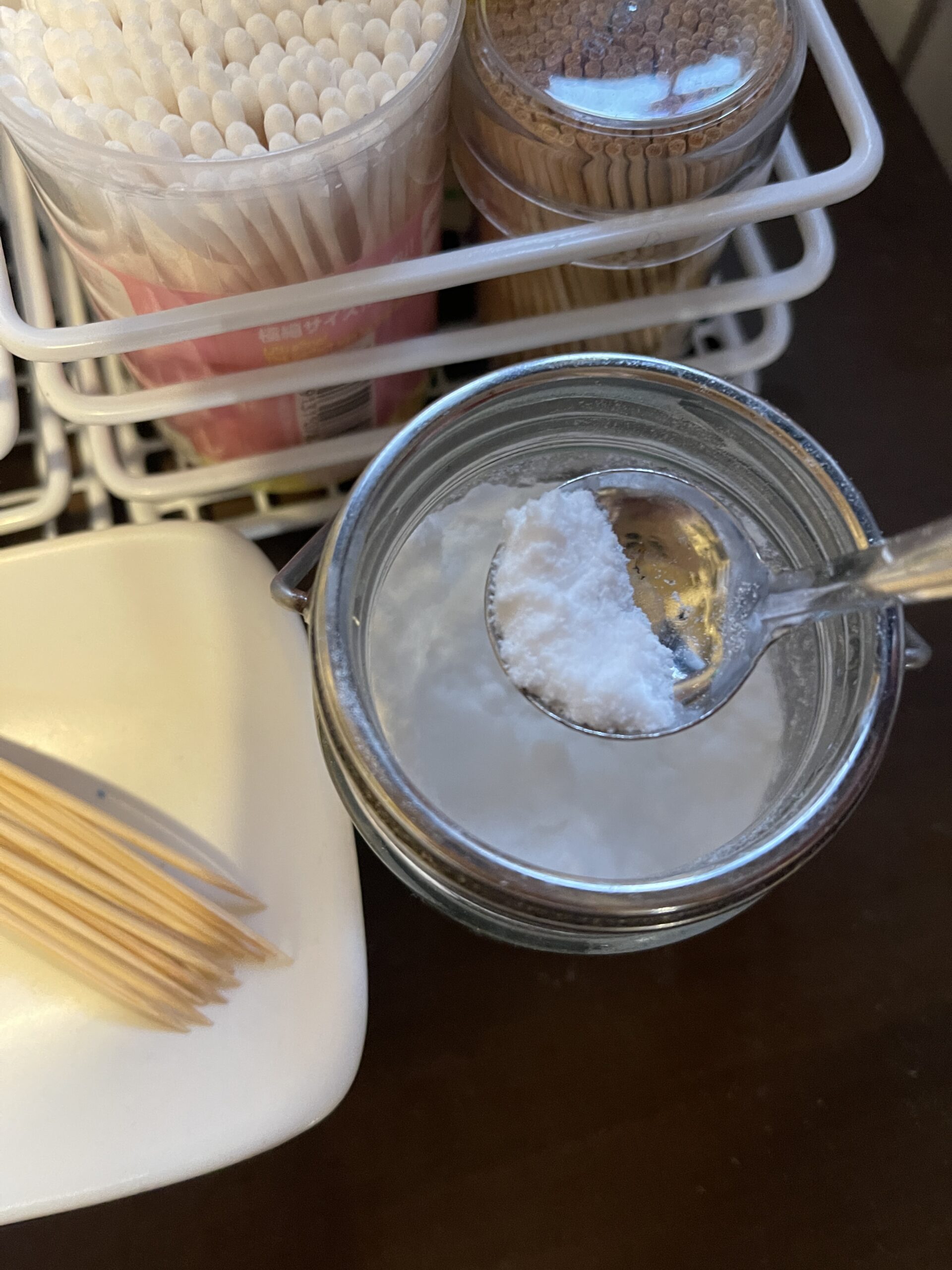 ①重曹をコップの水に溶かす(200ミリリットルに対して小さじ1くらいらしい、適当です)