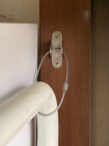 こちらも食器棚と同様に粘着テープで貼っただけで数分で対策完了です