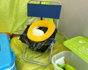 ポップアップテント内で使用しているしゃしんです。これでトイレが近くにない場所でいきなり子供がトイレしたくなっても安心。もちろん大人も使えます。
