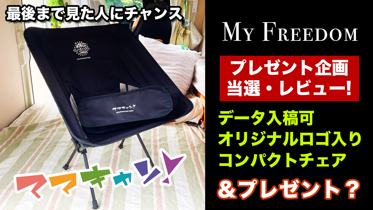 世界に一つだけのオリジナル・キャンプギアを作ろう!自由なデザインのデータ入稿でオリジナルロゴがプリントできる、軽量・高耐久なコンパクトチェアのご紹介【MyFreedomプレゼント企画当選】ママキャン!