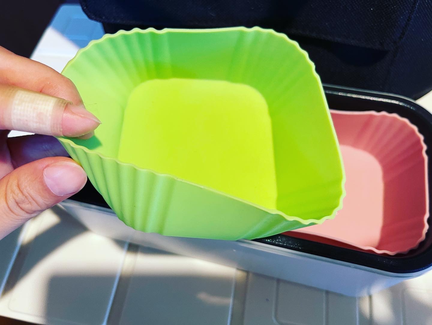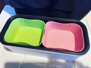 この大型のシリコンおかず容器も炊飯の容器にシンデレラフィットするんですよね。