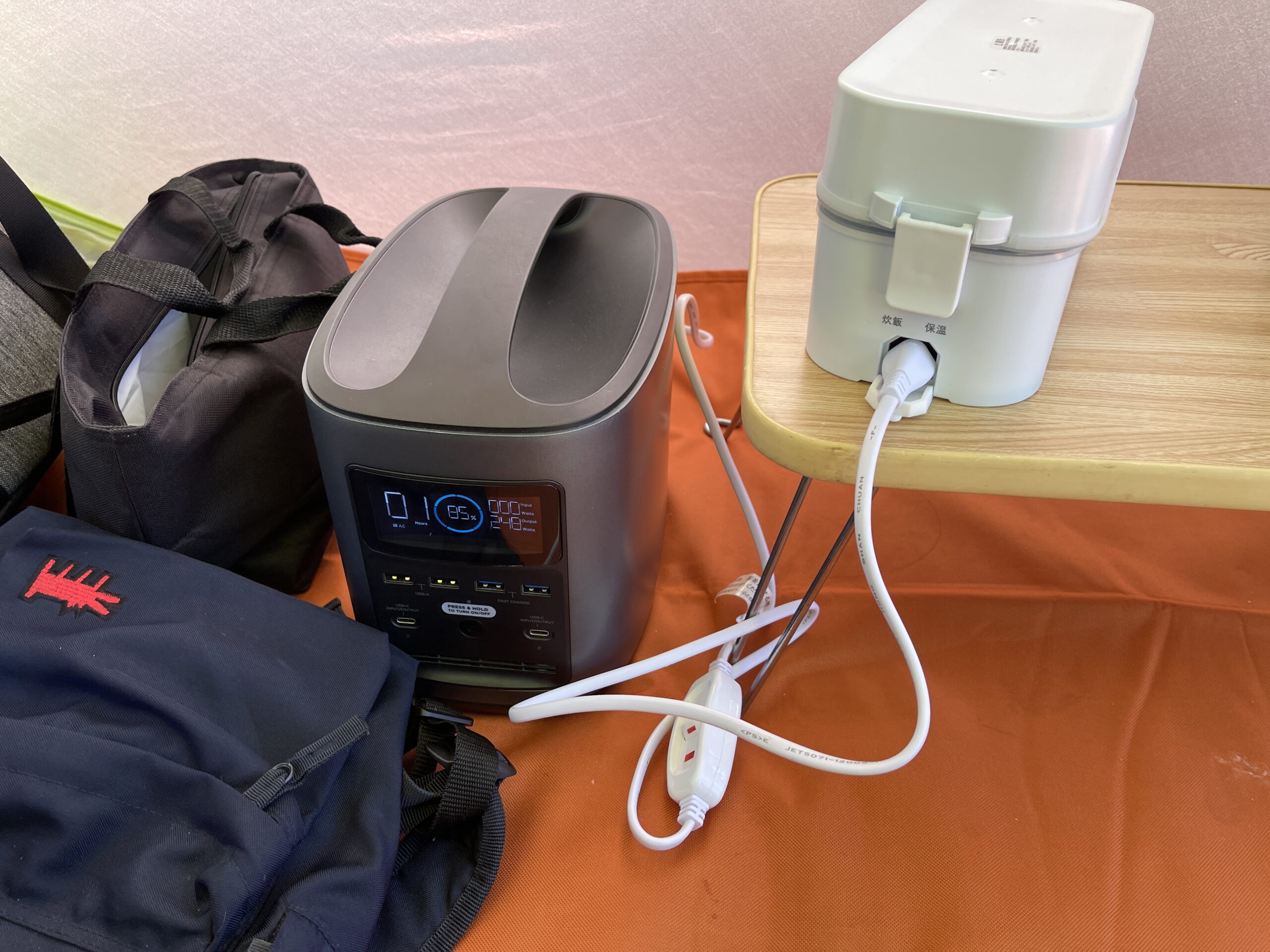 キャンパーの間ではメスティン炊飯が一大ブームではありますが、ママキャンの母ちゃんは毎回失敗してメスティン使いが苦手。また狭い車内で火を使うのも怖いというので、以前より切望しておりました、小型の省エネ炊飯器。