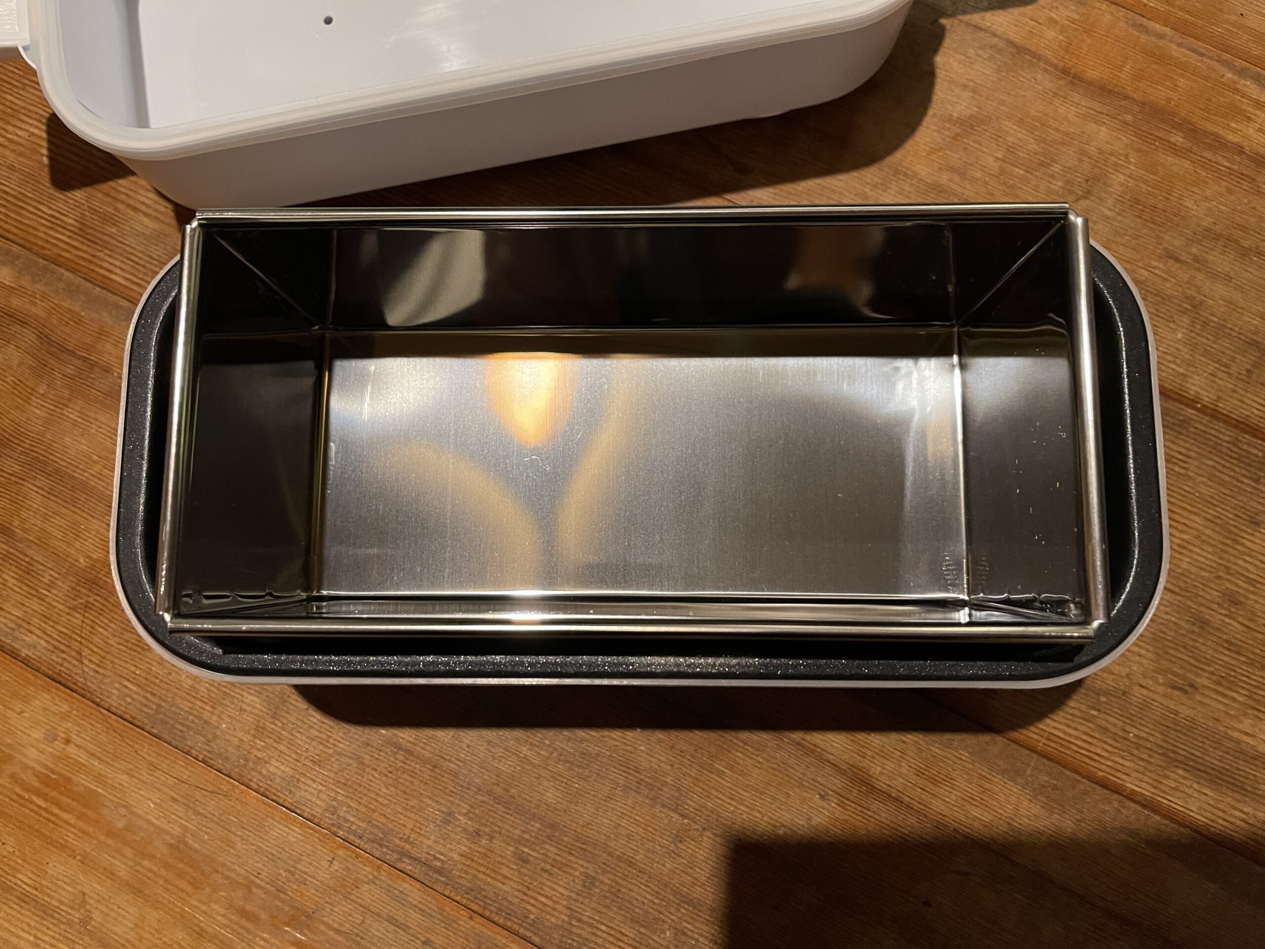 あと、ここからはお遊びというか実験要素があるのですが、写真のミニパウンドケーキ型もぴったり収まったので、これで蒸しパンとか作れないだろうかと、まだやってないのですが今度試してみるつもりです。