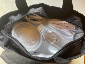 (持ち運び用の袋に私が使ってるのはこれ。市販でだいたい1000円前後からだと思います。普通のお弁当箱サイズでは入らないと思うので一回り大きめのを探す必要がありますが、デザインなど自分で選べるので、別に付属がなくても良いですけどね)