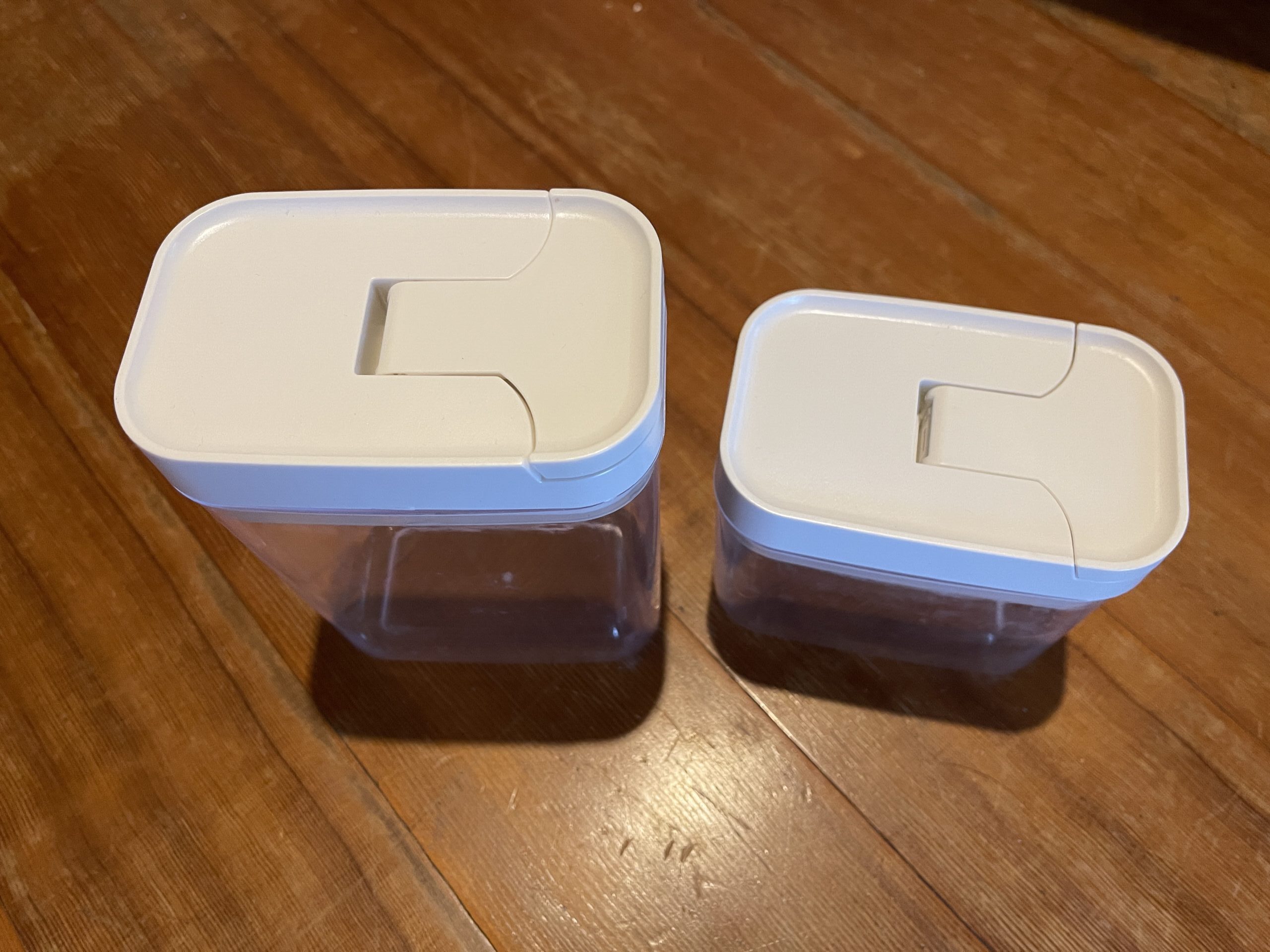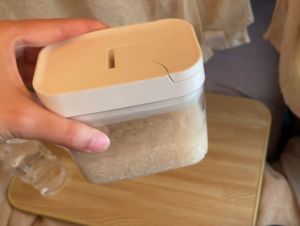 他の形の容器は、底とか出口にお米の粒が溜まって、取り出すのが面倒臭かった。